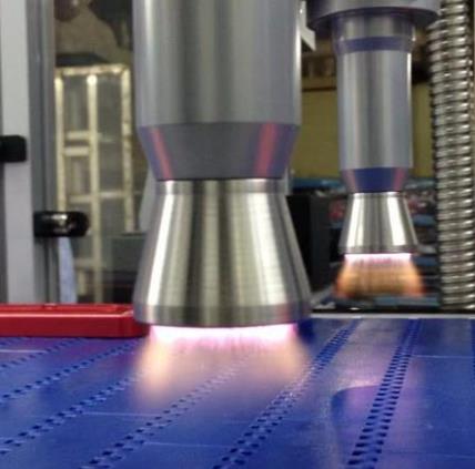 像大氣等離子清洗機的噴嘴中是直噴出的離子,這種情況由噴嘴的結構間接的改變了離子的運動方向(直接面對被處理材料)。從而使大氣等離子在流水線上只能處理一個表面,這也是與真空等離子清洗最大的區別之一。如今應用最多的就是手機行業:手機玻璃表面活化處理,底板點膠前處理,封裝前端處理,手機殼表面噴漆前活化處理等等。一般的手機工廠每日幾K到幾十K的產能,就必須要有快速高效的活化處理工藝,大氣等離子清洗機就是為此而生的。無論配合在三軸平臺,傳輸機還是裝在整條流水線上,大氣等離子清洗機都能快速使被處理材料其中一個表面達到很好的活化效果。